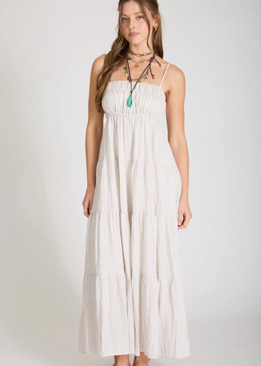 Stripe Shirred Empire Waist Midi Dress