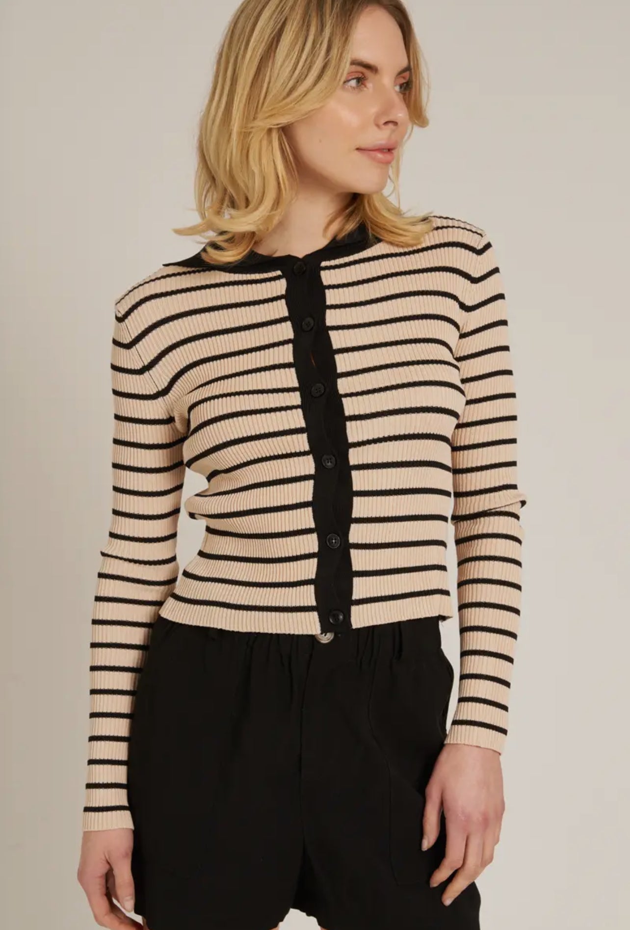 Striped Button Down Sweater Top